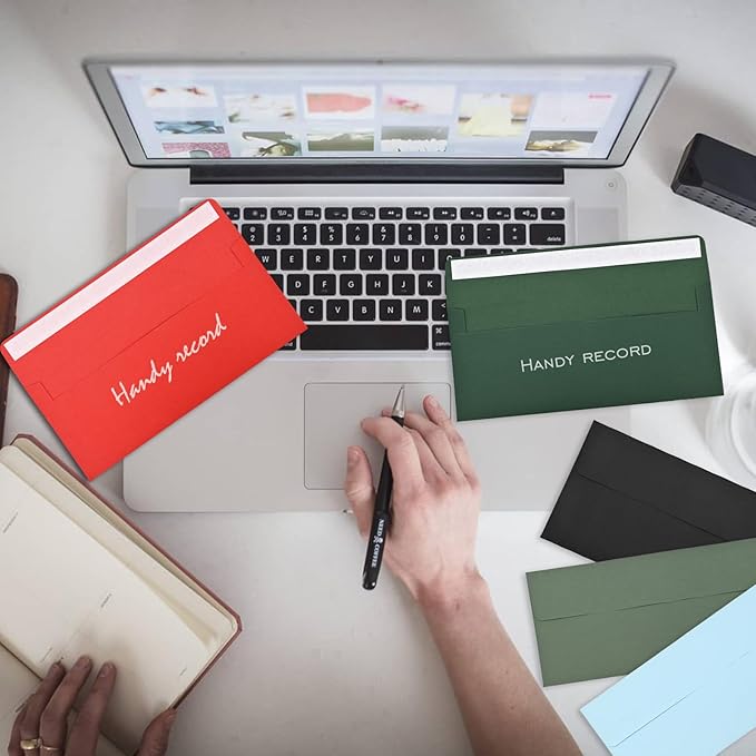Business envelopes, green envelopes, standard self-sealing envelopes (personal and business), checks, letters, invoices (41/8x9/2 inches)