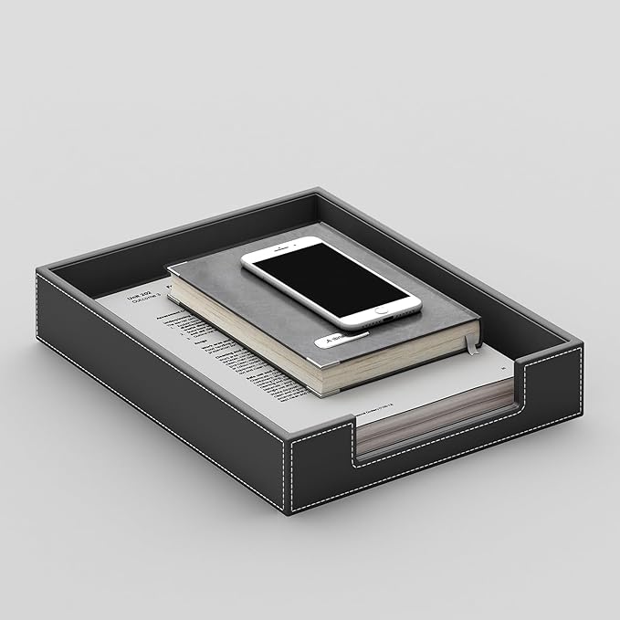 Leather Desk Organizer Tray, Stackable Leather Tray, Desk Organizers and Accessories, Magazine File Holder for Office Supplie(Black)