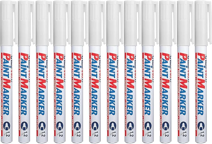 Artline 440XF Paint Markers for Wood, Plastic, and Canvas, Waterproof Marker for Indoor/Outdoor Applications, Opaque Coloring Markers with 1.2mm Bullet Tip - White, 12 Pack