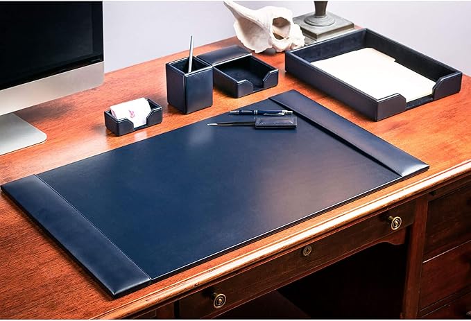 DACASSO Bonded Leather Desk Set - Luxury Leather Desk Pad & Desk Organization Essentials (Navy Blue, 6 Piece)