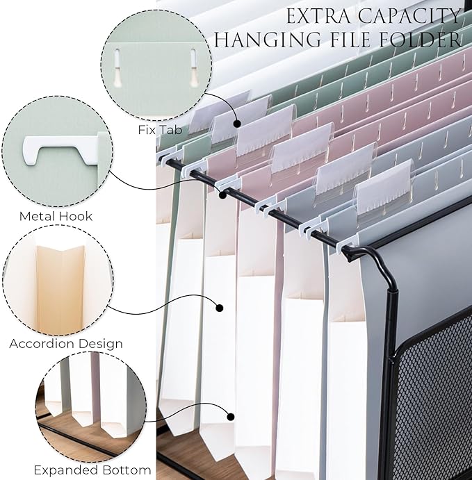 - Extra Capacity - Accordion design ensure the paper is not easily moved in the file folder. The 2” expandable bottom of cute hanging file folder can place more paper, more compact and organized