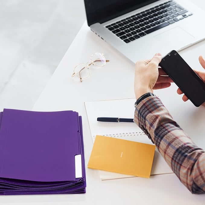 48 Pack Colored Plastic File Folders with Tabs and Sticky Labels Sturdy 1/3 Cut Tab Manila File Folders Letter Size 8. 5 x 11 Inch for Office Home Supplies Organizer Documents(Purple)