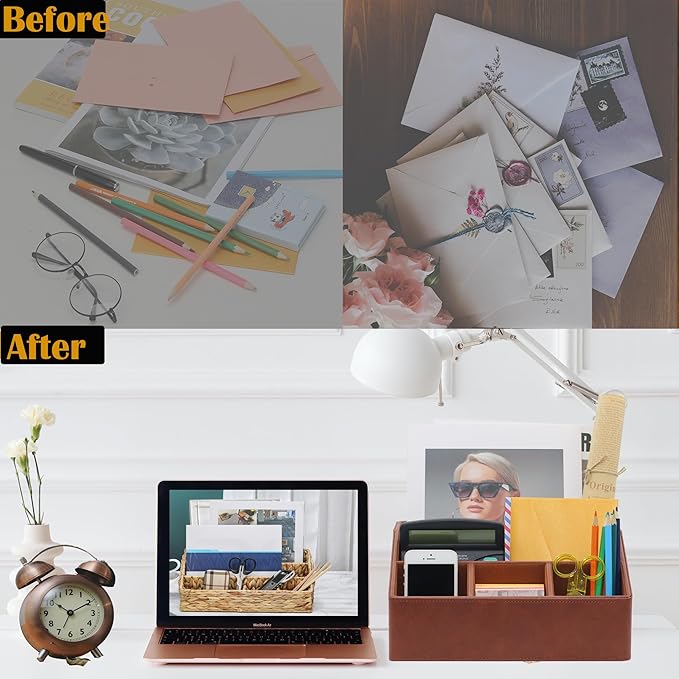 - Efficient Office Organization: Elevate your workspace with our premium PU leather desk organizer; Featuring five compartments, it's the perfect multifunctional accessory for efficiently sorting and storing mail, bills, and various office supplies, keeping your desk tidy and organized