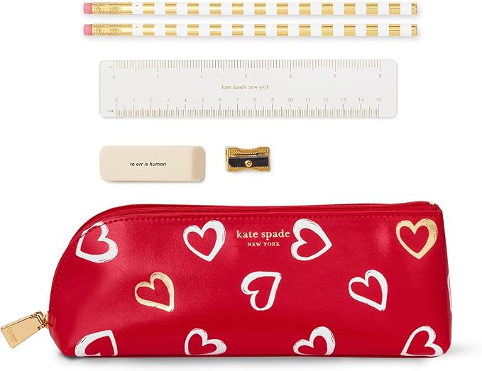 - Chic Organization: Keep your supplies tidy with this kate spade new york pencil case in the playful Brushstroke Hearts pattern.