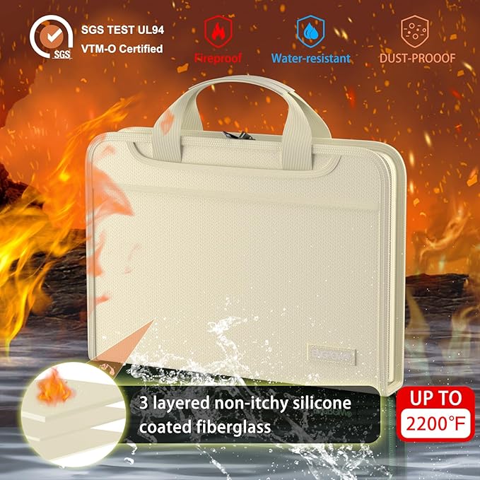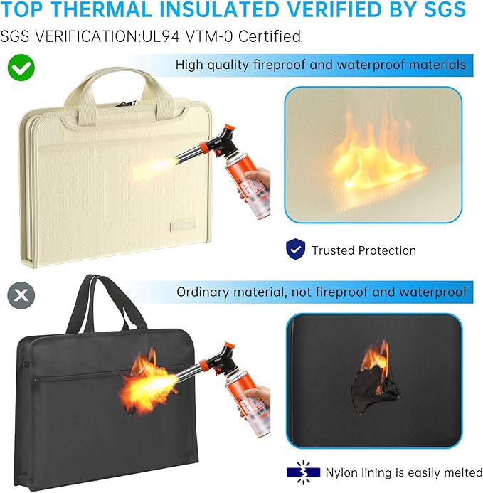 - High-Quality Materials: Protect your files with ENGPOW fireproof accordion file organizer.It is made of 3-layered non-itchy silicone-coated fiberglass which withstand the temperature up to 2200℉.It has been passed by SGS TEST(UL94 VTM-0 Certified).Fireproof File Folder is fireproof&Water-resistant,which can effectively protect your important documents in a fire,flood,and wet weather. They will further keep your files intact.Giving you time to save your important documents when disaster strikes