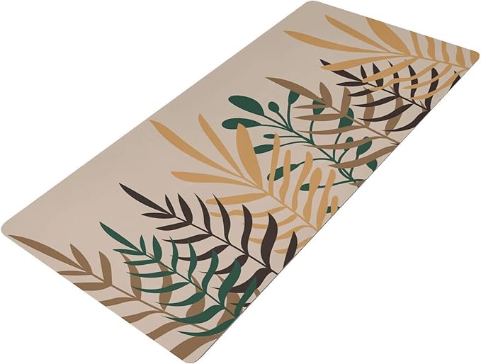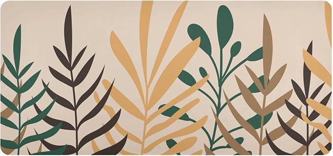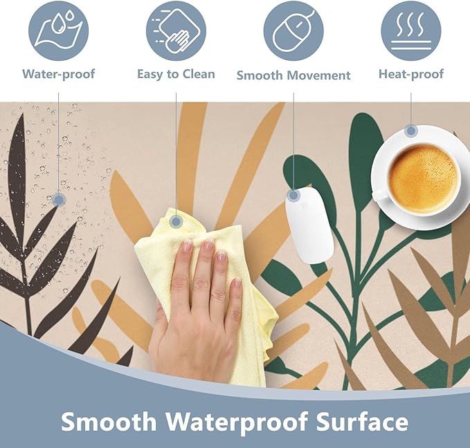 Mouse Pad Desk Mat Leather Desk Pad Large Gaming Desk Cover Protector Mat for Keyboard Computer Laptop Office Waterproof 47.2 x 23.6 Inch Boho Leaves Beige