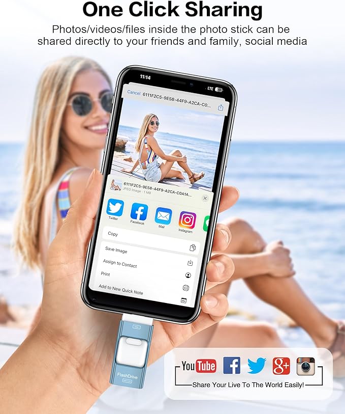 - Multifunctional App Manage Your Files - Effortlessly manage files on your iOS device with the EASYFLASH PRO app, which enables you to view, access, and back up all the photos videos and address book. You can also share photos, videos with just one click directly from our thumb drive to social media such as: Instagram,Twitter.