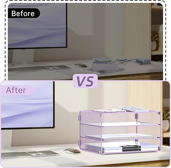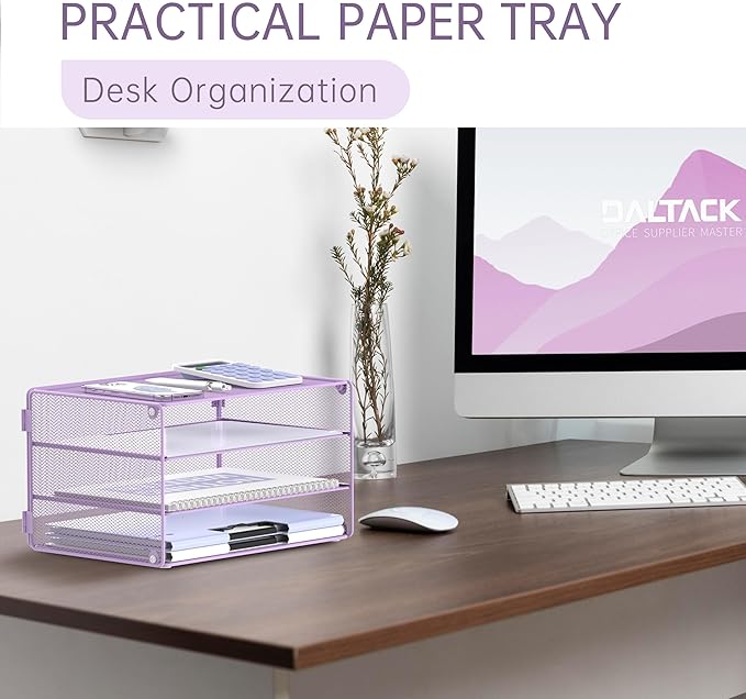 - 3-Tier Design: "Daltack" simple and stylish purple desk organizer, keep your desk organized in a different new way with our paper organizer for desk.