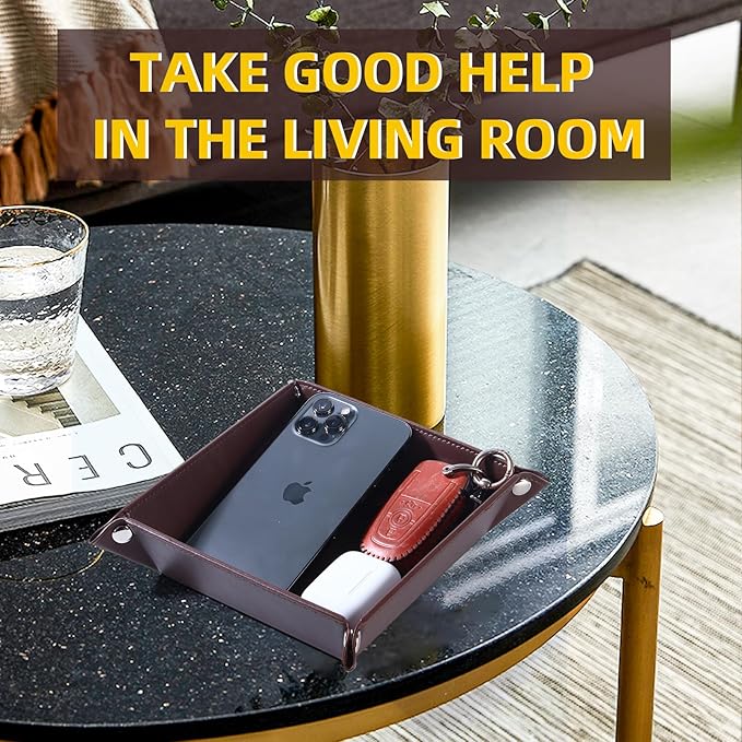 - Perfect Organizer Tool - The faux leather valet tray is a game-changer for staying organized in style. This desk organizer tray is not just functional, it's a sleek and elegant addition to any space. Collect your items in one place with such a great home-organization helper!