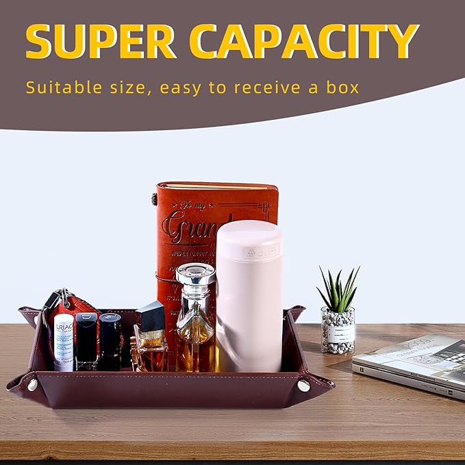 - Perfect Organizer Tool - The faux leather valet tray is a game-changer for staying organized in style. This desk organizer tray is not just functional, it's a sleek and elegant addition to any space. Collect your items in one place with such a great home-organization helper!