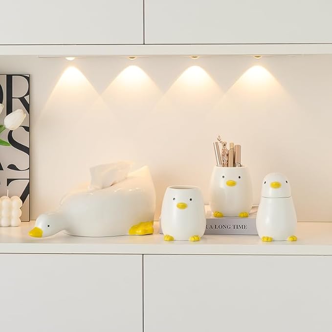 Ceramic Round Pen Holder for Desk Cute Cartoon Animal Stand Pencil Cup Pot Desk Organizer(Gray White), Yellow