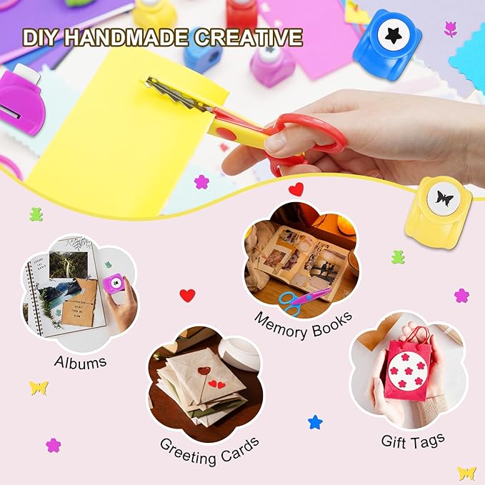 - CHILD FRIENDLY : The mini hole puncher for crafts is made of high-grade ABS plastic, with no burrs or sharp edges.This hole punch craft set can be used for DIY scrapbook, greeting cards making, nail art, and kids' artwork. Especially suitable for interactive programs of teachers and students, hand-made activities for parent-child. Can excite children's curiosity and promote imagination, exercising the ability of using hands and brain