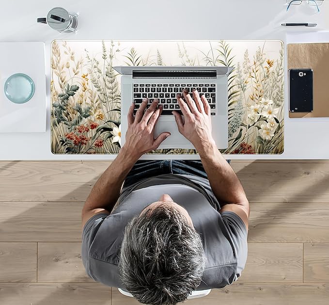 Beige Aesthetic Sage Desk Mat Cute Watercolor Flowers Mouse Pad Desk Pad, XXL Large Extended Gaming Anime Mousepad Big Keyboard Mouse Mat, Home Office Desktop Decor Deskpad for Women 31.5x15.75 in
