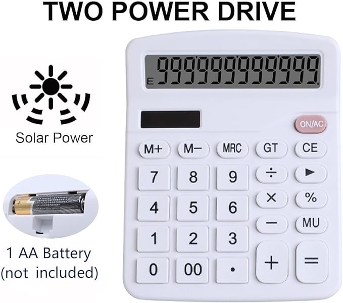 - [Dual Power Design] This desktop calculator utilizes both the powerboard and battery power(battery is not included). The powerboard will power up the calculator thoroughly in a lit environment, it's a simple and worry-free partner.