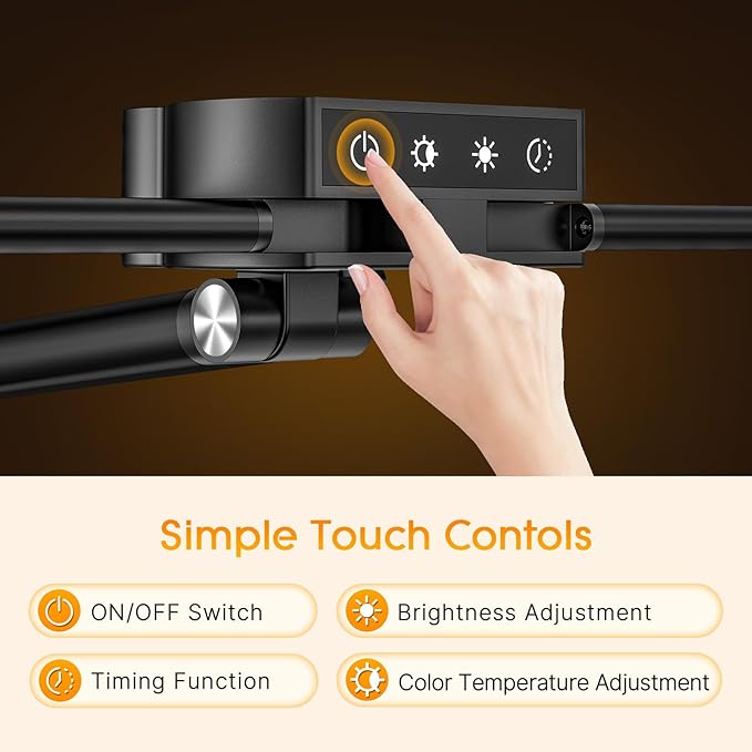 - ๐๐ฒ๐๐๐๐ฟ๐ฒ ๐ฆ๐ฒ๐ป๐๐ผ๐ฟ ๐ฆ๐๐ถ๐๐ฐ๐ต & ๐ง๐ผ๐๐ฐ๐ต ๐๐ผ๐ป๐๐ฟ๐ผ๐น - The desk lamp is crafted with a distinctive touch-free motion sensor switch, which allows you to turn it on/off effortlessly by simply waving your hand without having to leave your seat. This LED desk lamp also features touch control to adjust the color temperature and brightness of the lights, activate the timer function by a short press, automatically turning off after 45 minutes.