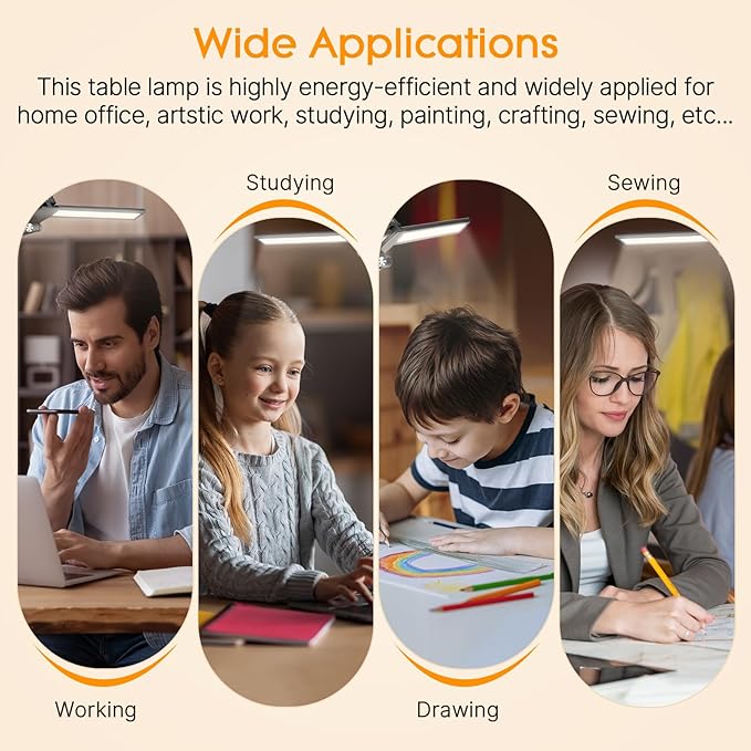 - ๐๐ป๐ฒ๐ฟ๐ด๐ ๐ฆ๐ฎ๐๐ถ๐ป๐ด & ๐๐๐ฒ ๐๐ฎ๐ฟ๐ฒ - Consuming 80% less energy than traditional bulbs, this led desk light is composed of 96 high quality lamp beads, highly energy-efficient and eye-caring. The clamp desk lamp has uniform brightness, wide lighting range, no strobe, no blue light hazard, no glare, soft light, protecting you eyes from fatigue.
