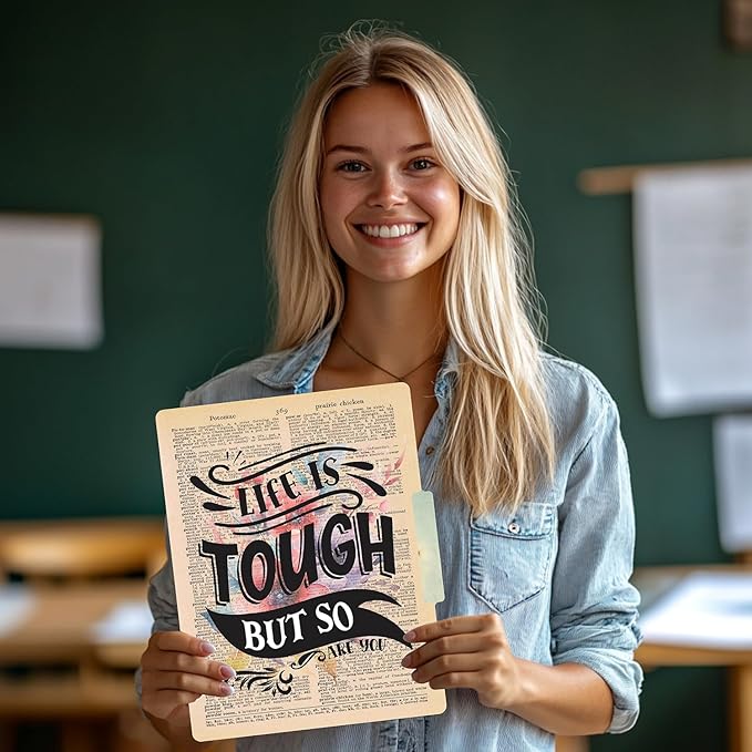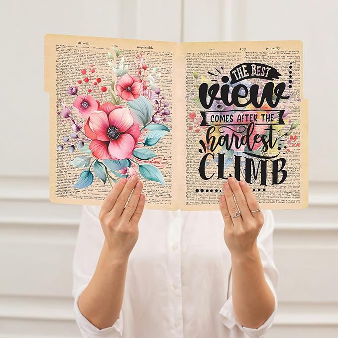 - DECORATIVE FILE FOLDER: Organize loose Papers, Documents, Notes and Bills with these Positive Sayings Design File Folders that Keep your File Arrangements more Organized and Personalized. The Designs will keep you Motivated and Organized, Making them Perfect for Office, Home, Teachers, Students, Women, School, College and Business