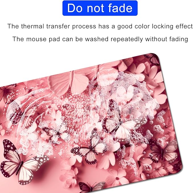 Pink Mouse Pad Desk Mat,Butterfly Large Mouse Pads Desk Pad,Long Mouse Pad Gaming Mousepad Mouse Mat with Stitched Edge - Non-Slip Rubber Base for Office Computer Keyboard Laptop
