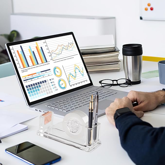 - Extensive Use: Acrylic tape dispenser can blend into office and make desktop more beautiful. Tape with dispenser will become good helper in study and good choice for gifting to your co-worker, friends, yourself or anyone you want