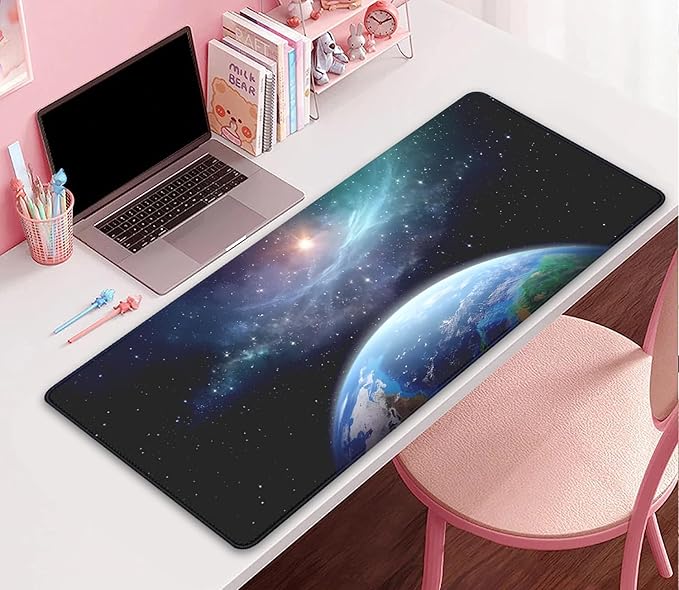 Earth and Starry Sky Large Desktop Mouse Pad, Desk Mat for Keyboard and Gaming, Office Home Work (27.5X11.8 in)