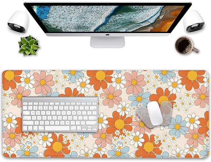 Vintage Floral Daisy Desk Mat, Retro Flower Mouse Mat, Gaming Mouse Pad for Computer, Office, Home Work