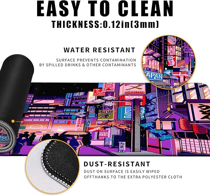 - 【Water Resistant Coating】The Fine-Textured, Heat-Resistant And Spill-Proof Material Effectively Prevent Accidental Damage From Scratches, Stains, Spills, Heat And Scuffs. Big Mousepad Is Easy To Keep Clean With Just A Wipe Of A Damp Cloth For Continuous Use. Large Gaming Mouse Pad Provides A Protective, Waterproof, Colorful Surface For Your Home Office Desk.