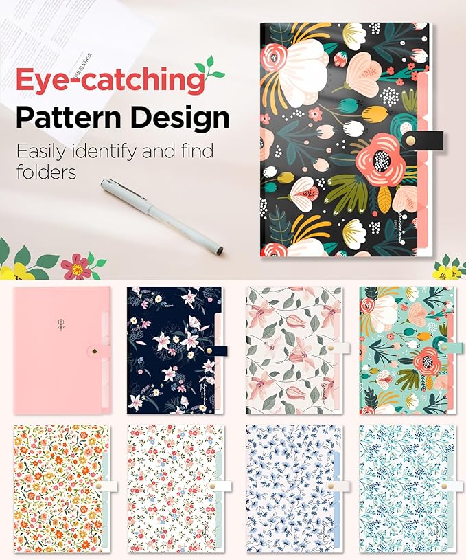 - Eye-catching color: This cute accordion file organizer has a beautiful floral pattern design, functional and aesthetic, adding a touch of personality to the organizing process. Easier to find the needed folders in the drawer.