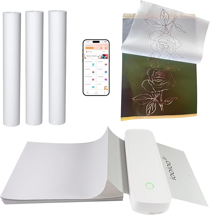 IOOIOO A80 Portable Thermal Printer 8.5x11 Letter Size, Tattoo Stencil Machine, no Ink Inkless, Bluetooth,for iPhone Android Mobile Phone Laptop PC,Home Office Travel-White