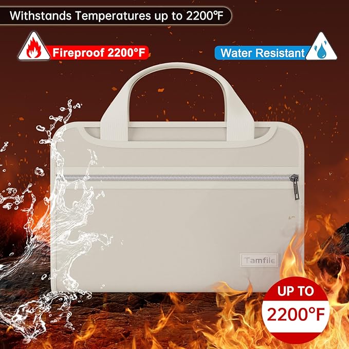 - [Tamfile Fireproof Storage Folder] The surface is fireproof, waterproof, and dustproof. The folder surface is made of fireproof and waterproof upgraded silicone fiberglass fabric, which can withstand temperatures up to 2200°F and has passed SGS testing (UL94 certification). File folders protect valuable items and information. Save and organize your valuable materials, artifacts, important documents, office supplies, and more with our advanced fireproof multipurpose folders.