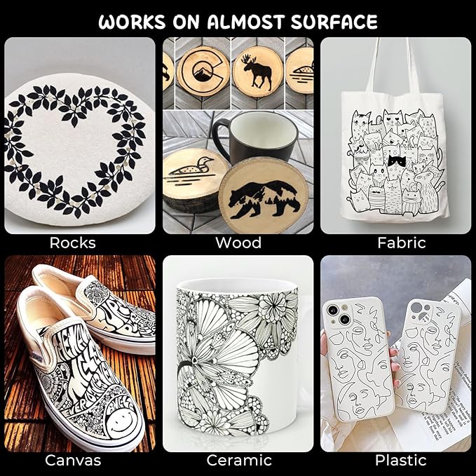 - Precision Meets Durability: Our black acrylic paint pen are perfect for intricate detailing and labeling. Whether you're sketching, doodling, or working on a masterpiece, enjoy exceptional control and resilience.