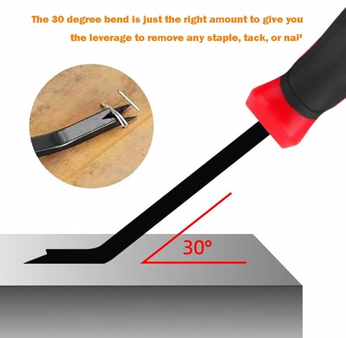 - The rod of the staple remover tool has 30 degree bend, which is just the right amount to give you the leverage to pull any staple, tack, or nail and can help you work more neatly,faster,and efficiently