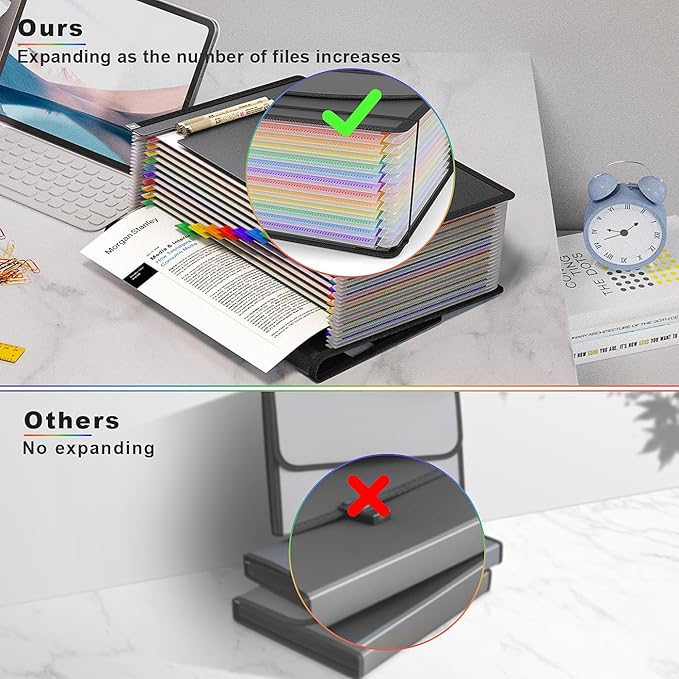 - ✔【TOP-GRADE MATERIALS】Expandable file folder are made by high quality polypropylene and polyester, 20% and more thicker than other file folders, it can stand on the desktop independently, no easy to be broken and deformed. 100% Waterproof, Non toxic, Non Odor, Anti-wear, tear and Moisture resistant.
