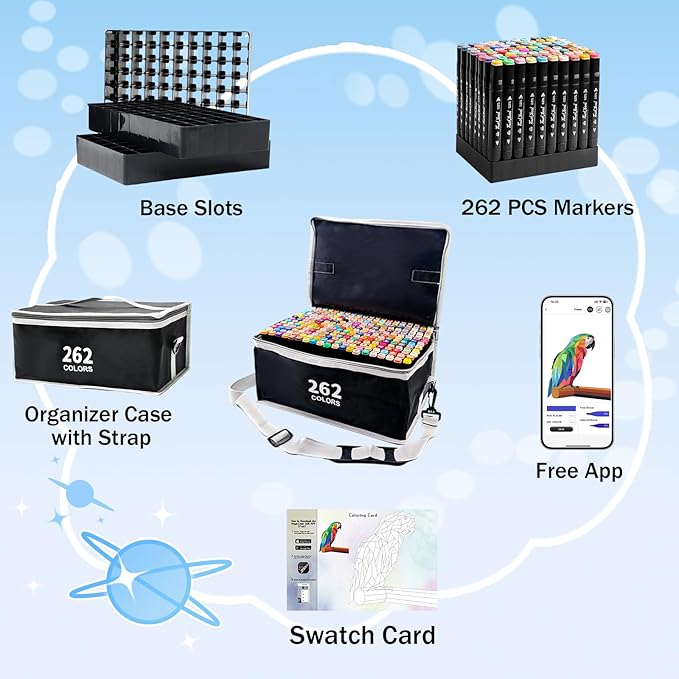 262 Colors Alcohol Markers, Art Markers for Artists with Coloring App, Dual Tip Marker for Adult Painting Sketching Drawing with Travel Case Great Gift Idea