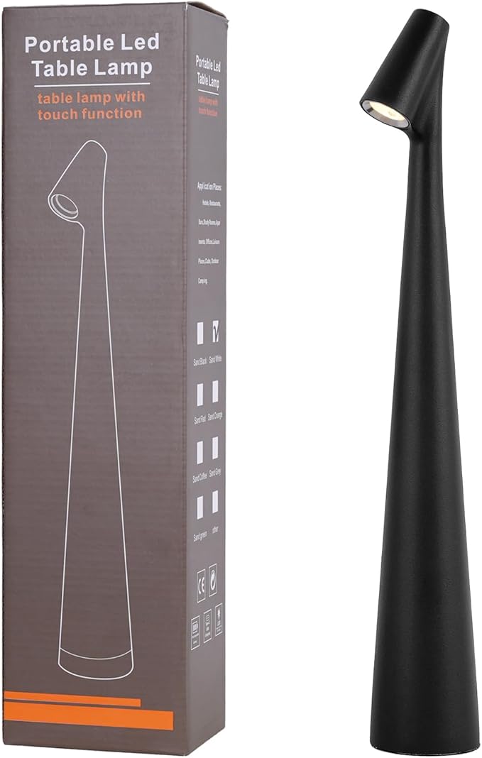 Cordless Small Table Lamps,3 Levels Brightness Portable Desk Lamp,Rechargeable Battery Lights for Outdoor, Restaurant, Bedside, Baby Night Light,Gifts(Black)