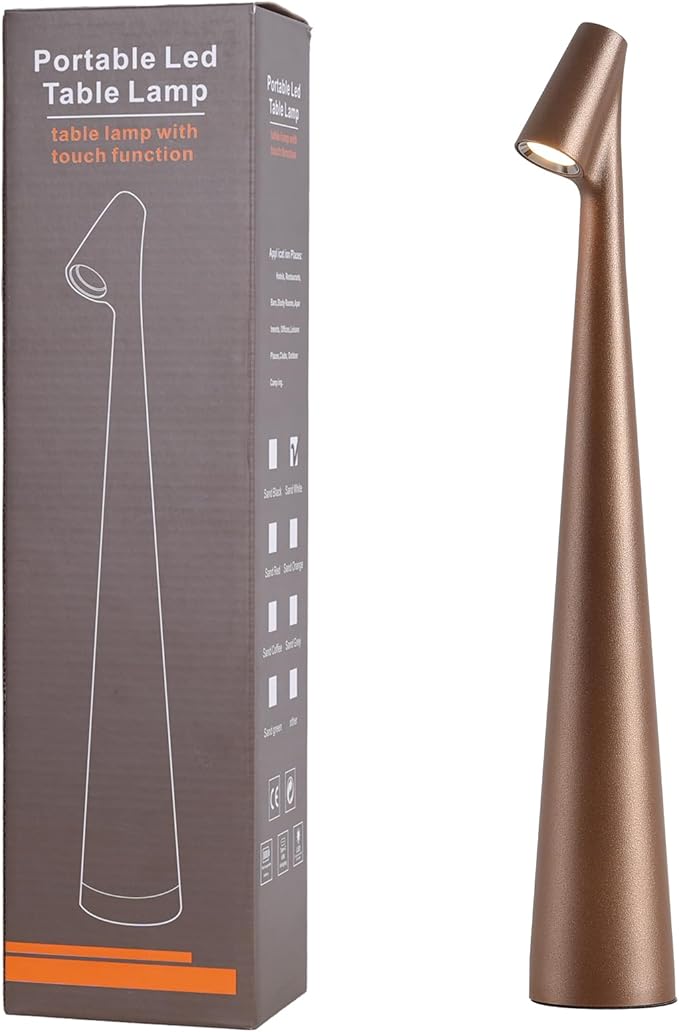 Cordless Small Table Lamps,3 Levels Brightness Portable Desk Lamp,Rechargeable Battery Lights for Outdoor, Restaurant, Bedside, Baby Night Light,Gifts(Brown)