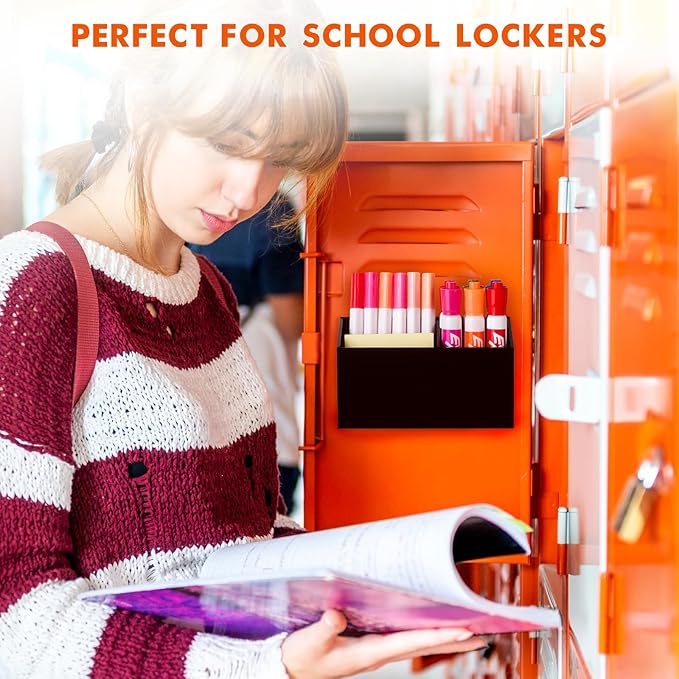 BEYGORM Magnetic Dry Erase Marker Holder for Whiteboard,Non-slip Acrylic Magnet Pen Holder for Fridge Refrigerator,Locker Organizer for Work,Locker Accessories,Pencil Cup for Desk(Black)