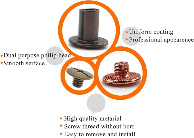 - Widely used in DIY leather craft and bookbinding: These leather screws are perfect for adding ornaments to the DIY handicraft decoration.Especially suitable for various leather crafts such as belts, handbags, leather shoes, binding documents, books, photo albums, DIY crafts. You can use it as you like.