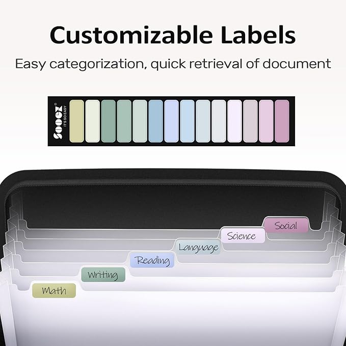 - Organized Easily & Quick Retrieval: The accordion folder and bonus pastels labels make it easier to sort and organize by subject or task. The 7 pockets and labels are helpful for at-a-glance organization.