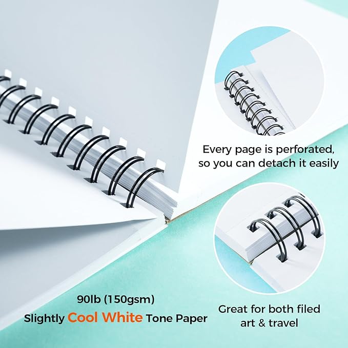 - Spiral-Bound Marker Pad, Easy-Tear Pages - The spiral provides a better drawing experience—easily flip the pages over, allowing you to keep the sketchbook flat and explore your creativity on any side you want. Sometimes you mess up and want to start over, or you want to tear out a page to share with a friend. Whatever the reason may be, it's easy to rip out pages thanks to the perforated edges, which make it a breeze. Carry your sheets wherever you go, from traveling to class or wherever!