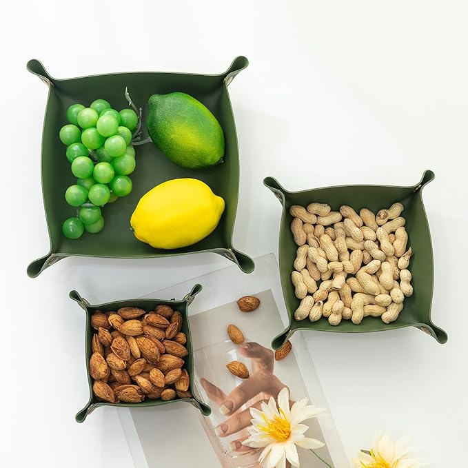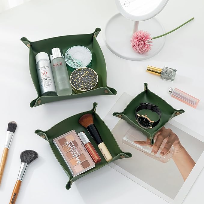 3 packs PU Leather Tray in 3 Sizes Jewelry Tray Glossy Leather Desk Organizer Leather Catchall Tray for Jewelry/Key/Coin/Sun Glasses/Watch/USB Cables etc. (Avocado green)