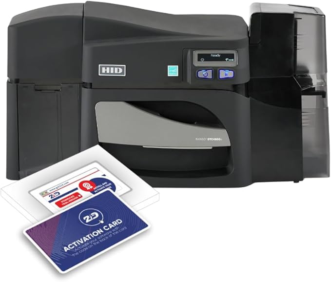 2ID - Fargo DTC4500e Dual Sided Badge Printer | 055100 | Full Bundle with Supplies | Professional Badge Machine for Corporate, Business, Student Badges, and More