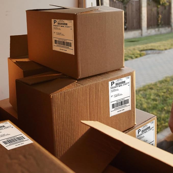 - The label printed with thermal printing process. Good quality white paper printed crystal clear easy to read text. Strong adhesive, They can stick well to corrugated boxes, stretch film wrap, poly bags and all types of packaging products. Easy to peel because the labels are cut into fixed length on continuously backing paper.