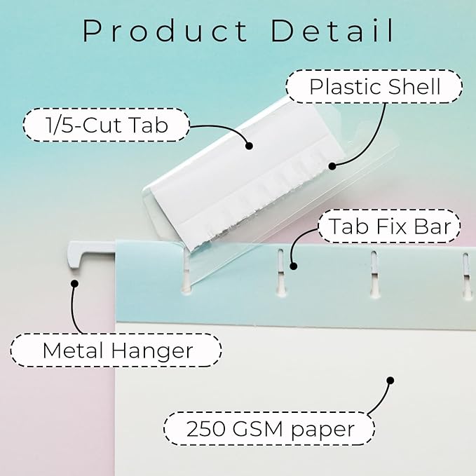 - Sorted Tabs - Each hanging folder features a 1/5-cut custom tab for hassle-free organizing and access to documents. Our pretty hanging folder can store bulky files, medical charts, or product manuals and keep files separate