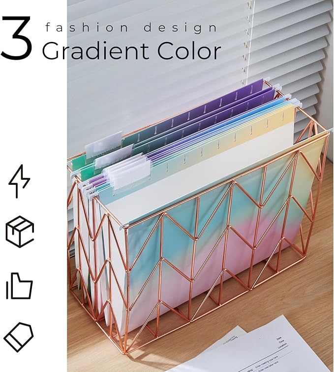 Y YOMA 6 Pack Decorative Hanging File Folders Letter Size Cute Hanging Folder Pretty File Folder Organizer for Filing Cabinet Office Home with 1/5-Cut Adjustable Tabs, Gradient Glow