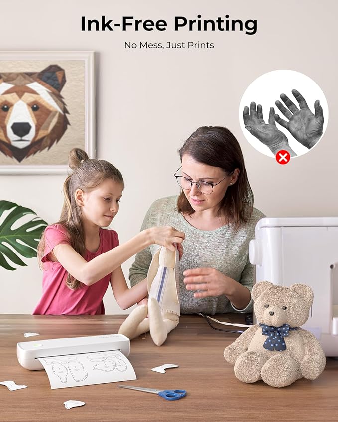 - Portable & Compact: Weighing only 750g, equivalent to a bottle of water, and measuring 11'' in length, similar to a Pad, this is a total portable printer wireless for travel. With Bluetooth connectivity, it allows you to print on the go. Additionally, the built-in 2600mAh battery ensures uninterrupted use throughout the day. Whether you're in a classroom, library, airport, or even the Grand Canyon, this small printer is all you need to print documents effortlessly.
