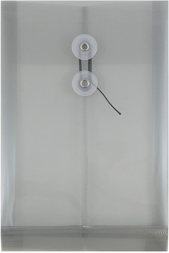 JAM PAPER Plastic Envelopes with Button & String Tie Closure - 6 1/4 x 9 1/4 - Smoke Grey - 3/Pack