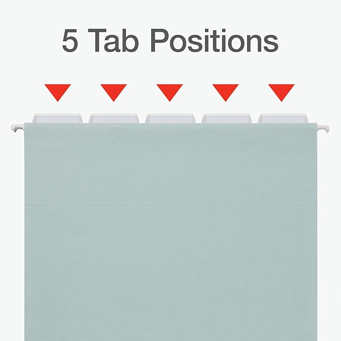 - Letter size hanging folders have smaller 1/5-cut tabs in assorted positions; stagger or place them all down the center to quickly identify your files