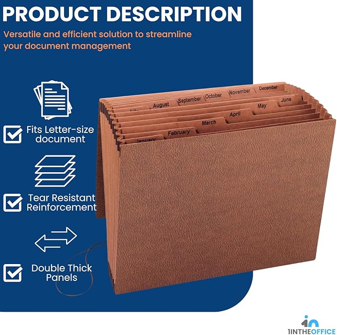 - Accordion file organizer features an expanding file folder features and an elastic cord, providing 12 pockets to accommodate a variety of documents, ensuring flexibility in organization.