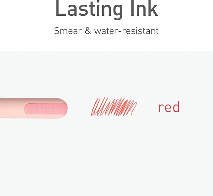- These red ink pens each have a frosted pale pink barrel and nickel silver pen tip for a cute design aesthetic