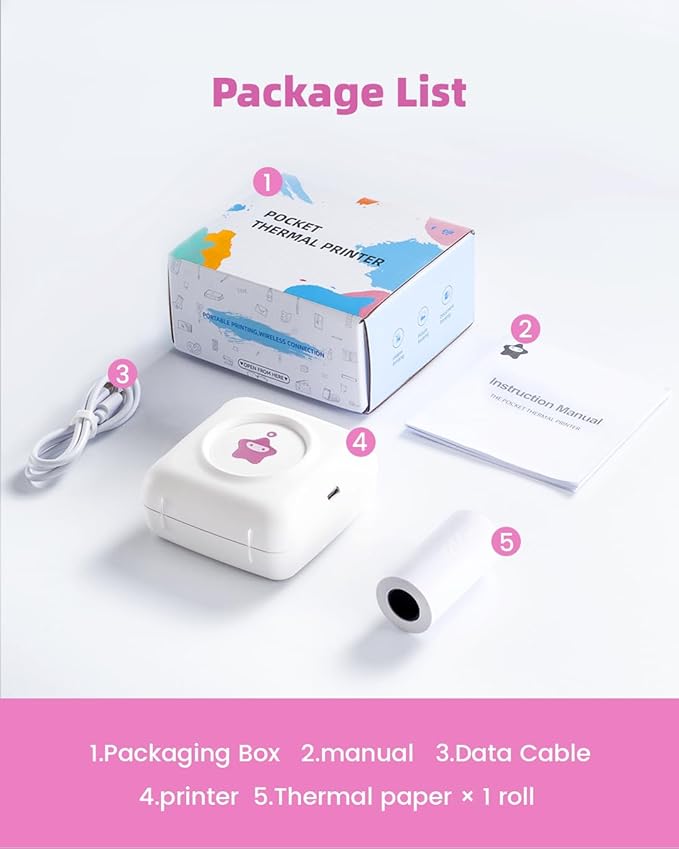 - Pocket-sized Portable Printer: Combinations of compact size and bluetooth connectivity, this portable thermal printer means that they're impressively convenient little devices that you can take the mini printer to anywhere and anytime. It's slim enough to slip into a pocket,weighs only 188g.